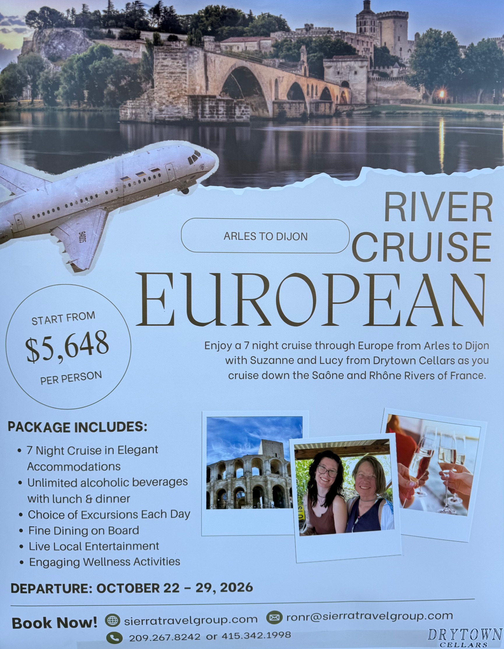 Drytown Cellars 16030 Highway 49, Drytown, CA, United StatesJoin us here at Drytown Cellars for an informational meeting about an upcoming European river cruise - plus we will have complimentary appetizers and one complimentary glass of wine!